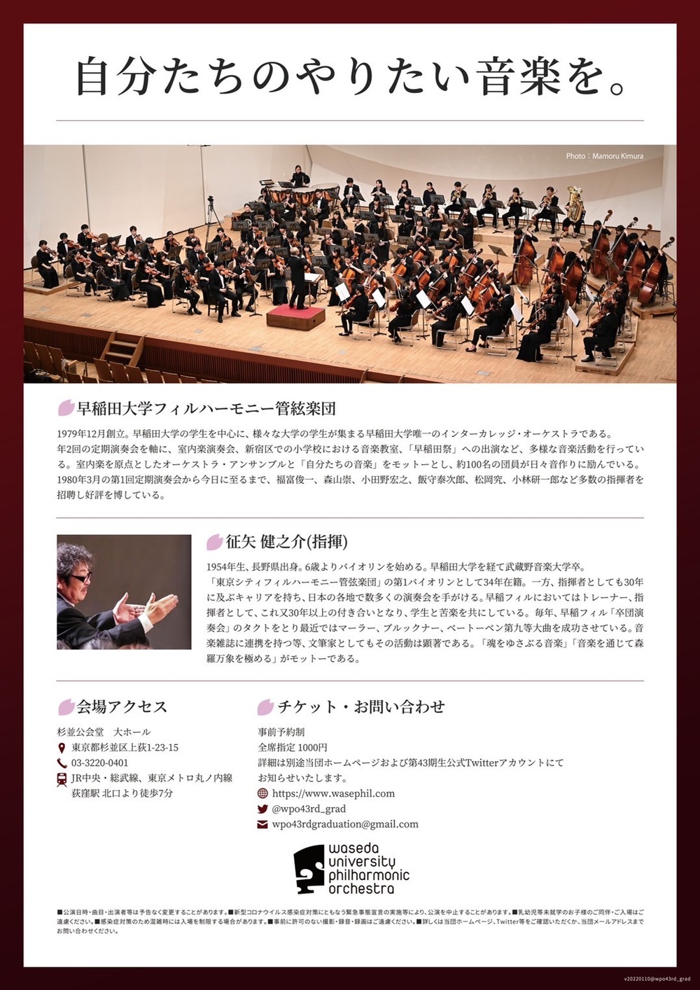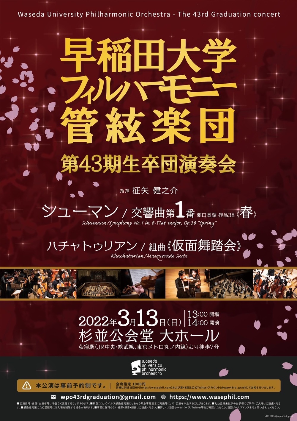 3月13日(日)に杉並公会堂で行われた、早稲田大学フィルハーモニー管絃楽団第43期生卒団演奏会のアーカイブ配信です。