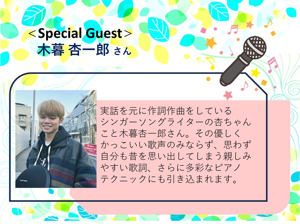 シンガーソングライターの杏ちゃんこと木暮杏一郎さん。その優しくかっこいい歌声のみならず、思わず自分も昔を思い出してしまう親しみやすい歌詞、さらに多彩なピアノ