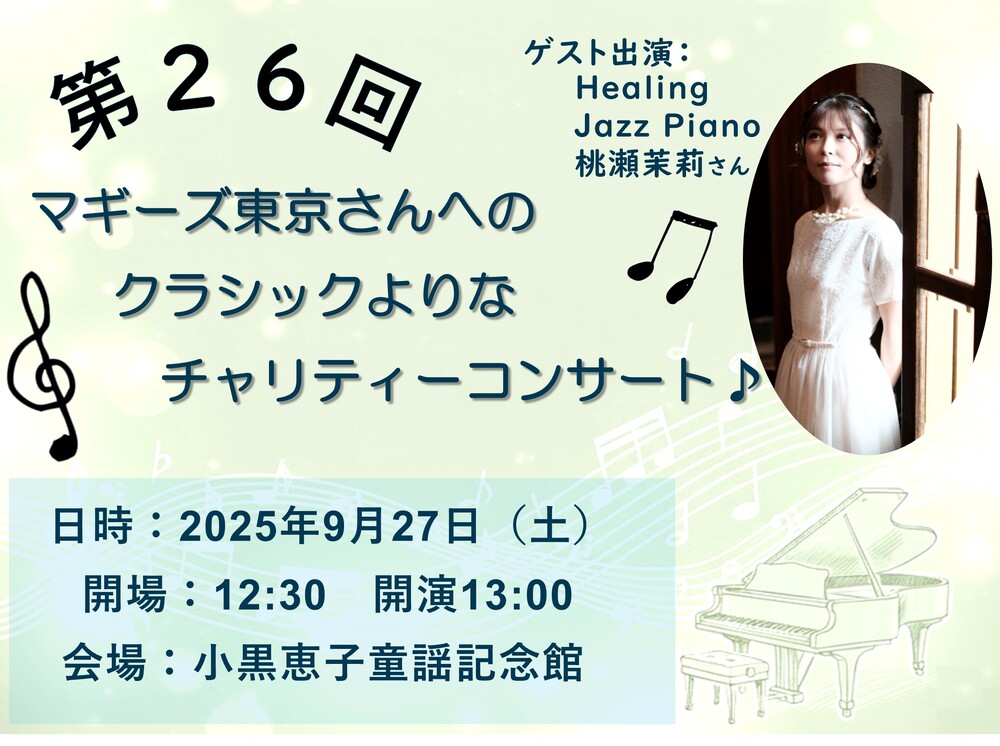 全てが寄付でまかなわれている認定NPO法人マギーズ東京さんを応援したい!また、マギーズ東京さんを訪れる皆様を応援したい!という想いを寄せて頂きましたプロ・アマチュア問わずの出演者によるクラシックよりなチャリティーコンサートです。