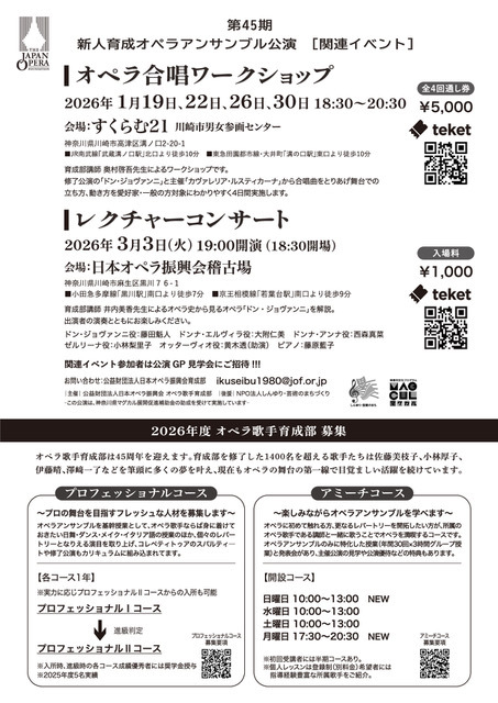 公益財団法人日本オペラ振興会オペラ歌手育成部は45周年を迎えます。