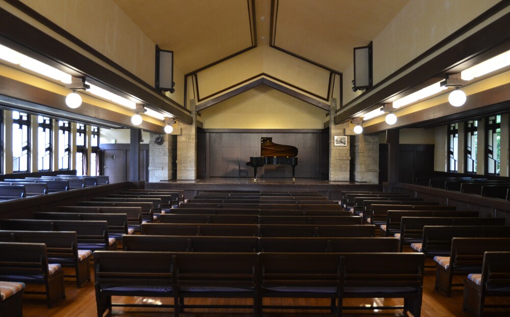 重要文化財である自由学園明日館を舞台に、1300年の歴史をもつ雅楽と、クラシックのストリングスやピアノを重ねることで、現代的で美しく、エンターテイメント性も備えた音楽体験を創出します。