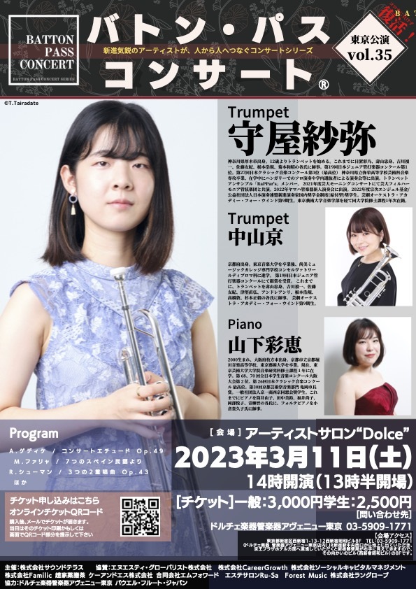 Batton Pass Concert(バトン・パス・コンサート)は、夢を持ち、これから活躍していくアーティストを応援するために起ち上げたプロジェクトです。こちらからアーティストを招聘する方式ではなく、アーティストがアーティストを紹介し繋がっていくコンサートです。