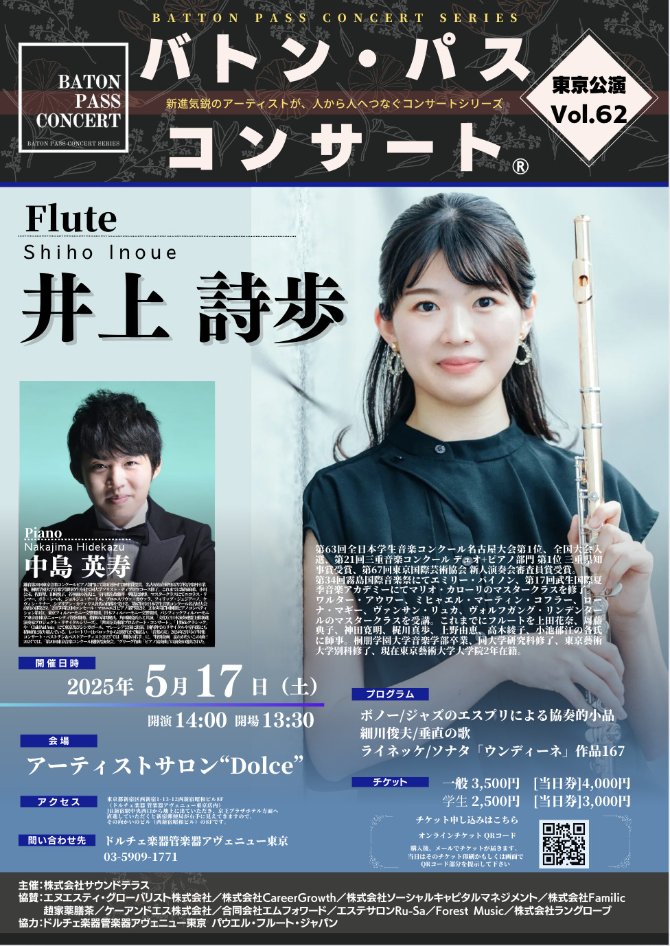 これまでにフルートを上田花奈、周藤典子、神田寛明、梶川真歩、上野由恵、高木綾子、小池郁江の各氏に師事。