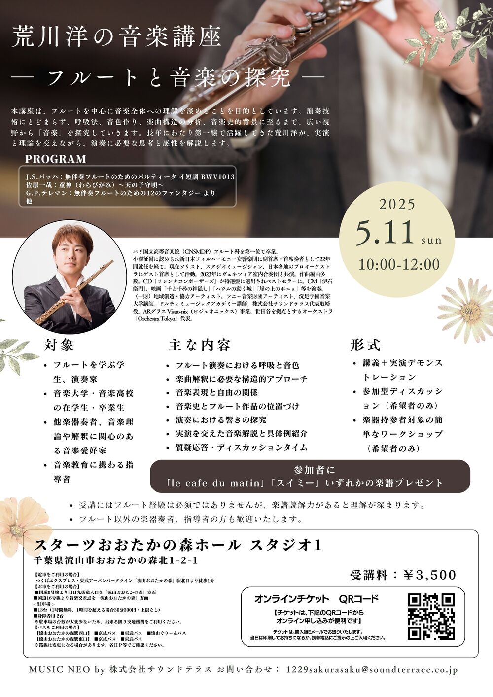この講座は、フルート奏者はもちろん、音楽に興味を持つすべての方にとって、音楽の深い理解と新たな視点を得る貴重な機会となるでしょう。