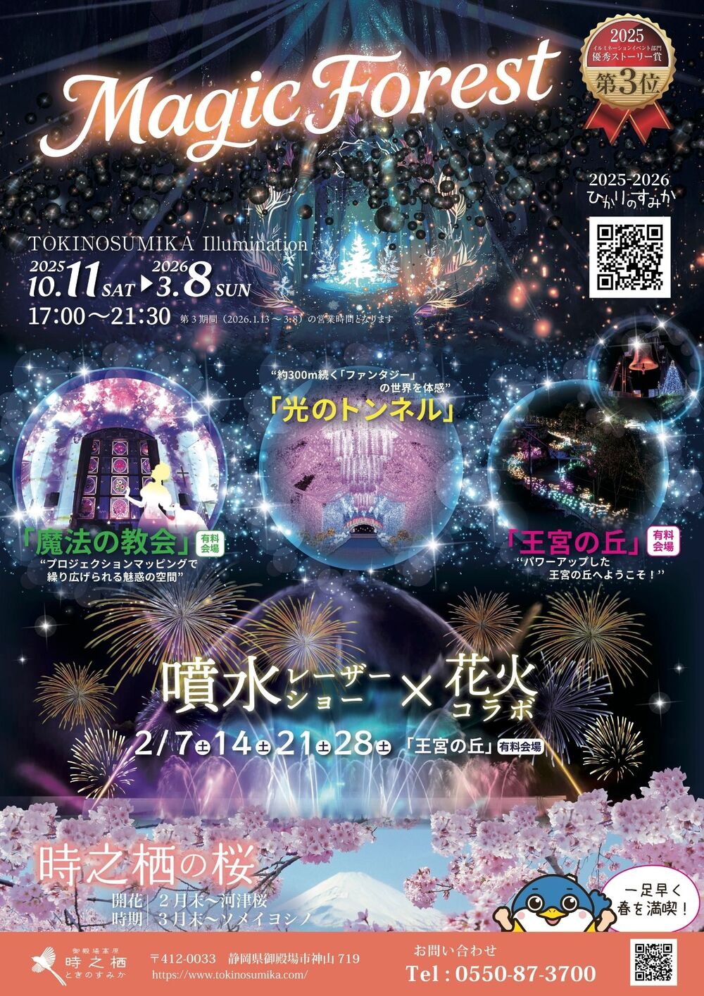 解散後は、今年30周年を迎える御殿場高原 時之栖のイルミネーション、550万球の光が織りなす幻想。時之栖イルミネーション2025-2026「ひかりのすみか」をお楽しみください。