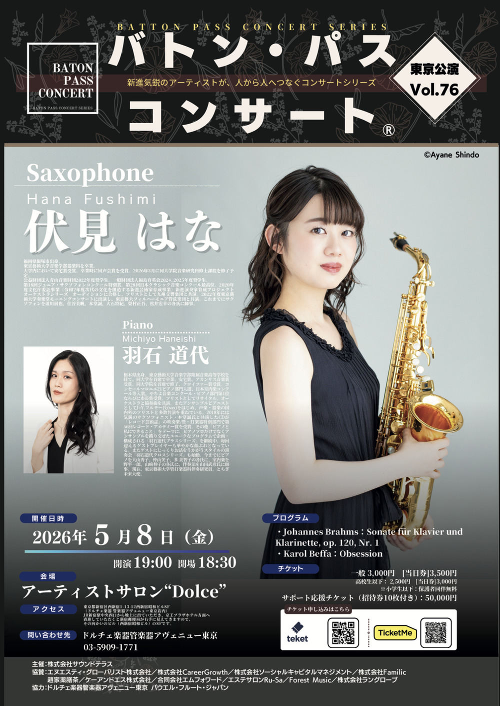 現在、東京藝術⼤学管打楽器科伴奏研究員。とちぎ未来大使。