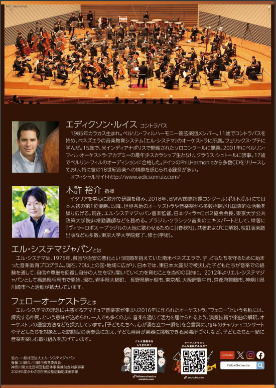 今年の定期演奏会ではフェローオーケストラのルーツでもあるエル・システマが生んだ、世界を代表するコントラバス奏者、エディクソン・ルイスをソリストとして迎えます!