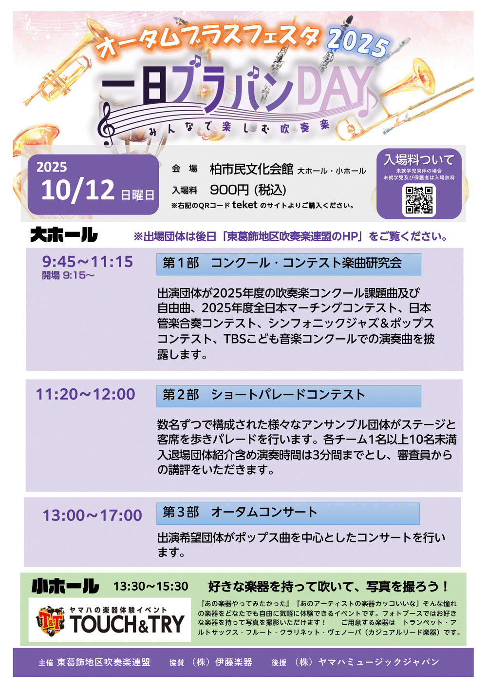 出演団体は後日「東葛飾地区吹奏楽連盟のHP」をご覧ください。https://www.tokatsusuiren.org/