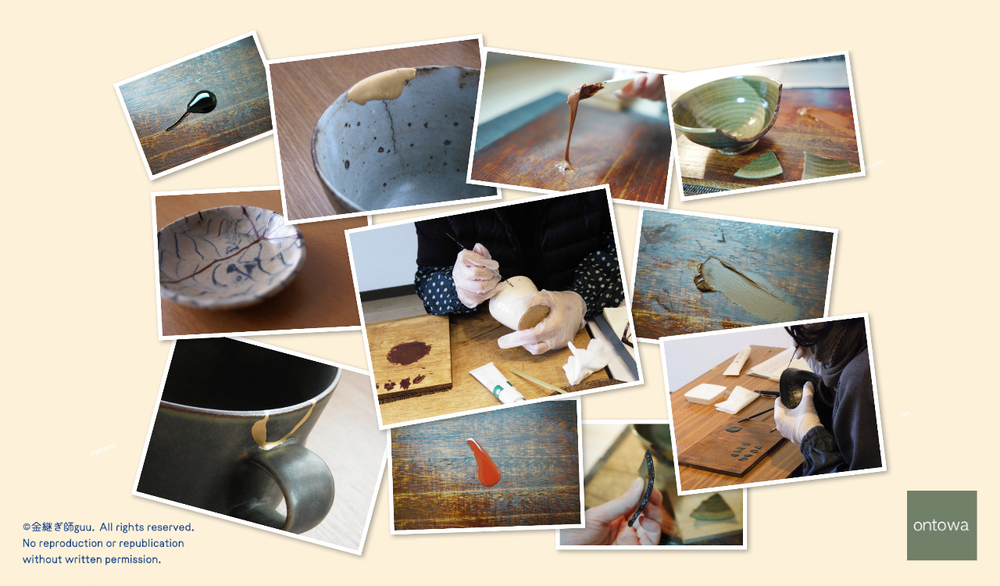 漆という天然素材を使う金継ぎは、手しごとによる複数回の工程からなる時代の流れに逆らう技法で、大変手間のかかるものです。