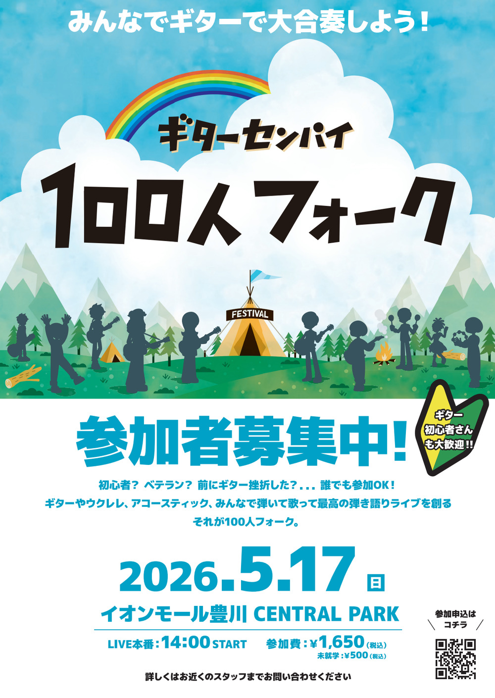 アコースティックギターや生音の楽器をもって、みんなで1つの曲を大合奏するイベントです。