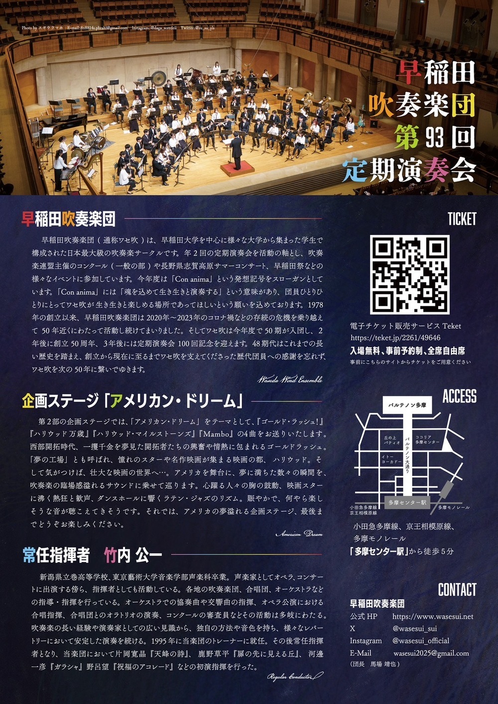 その他のお問い合わせ先:馬場靖也(団長) wasesui2025@gmail.com