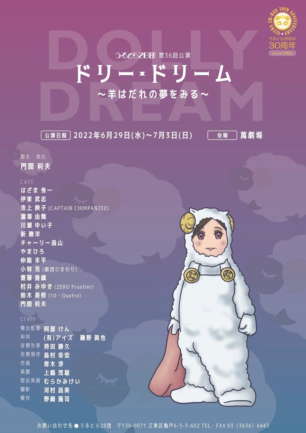 2022/6/29(水)~7/3(日) に萬劇場で行われた、うるとら2B団 第36回公演「ドリー・ドリーム~羊はだれの夢をみる~」を2022/7/10(日)~2022/7/31(日) の期間、アーカイブ配信いたします。