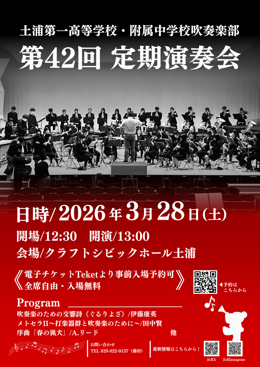 吹奏楽曲からJ-POPまで幅広い楽曲を演奏予定です。第2部の劇ステージや幕間のアンサンブルにも注目です!中学生・高校生総勢70名で奏でる大迫力の演奏をお楽しみください!