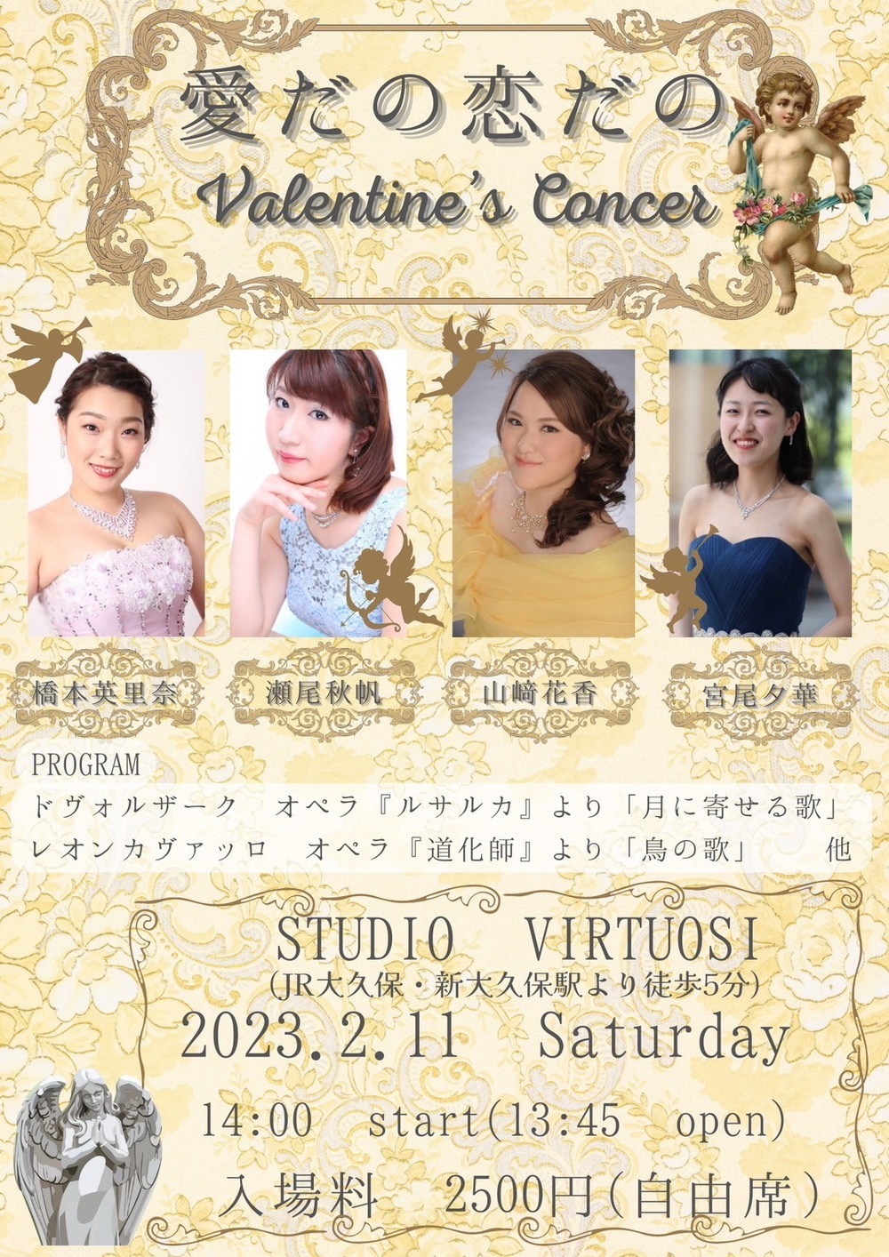 ソプラノ声楽家3人による、愛や恋をテーマにした演奏会。