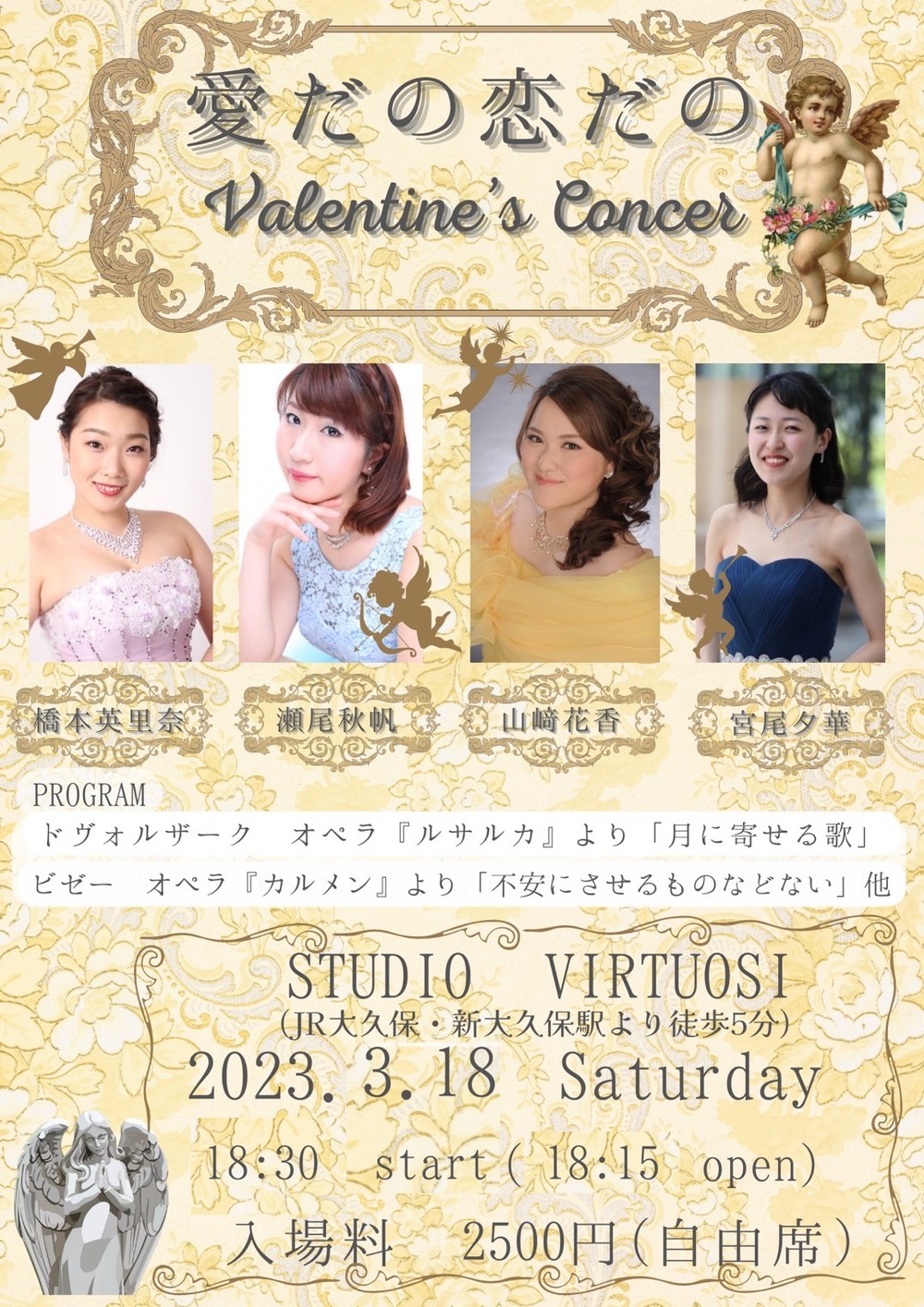 ソプラノ声楽家3人による、愛や恋をテーマにした演奏会。