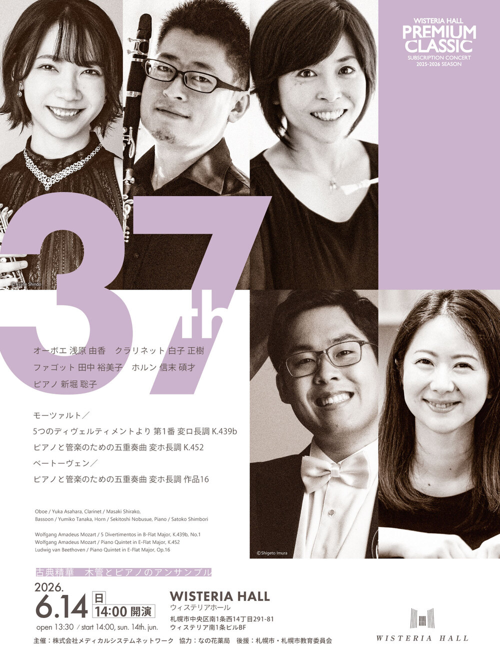 オーボエ 浅原 由香 クラリネット 白子 正樹 ファゴット 田中 裕美子 ホルン 信末 碩才 ピアノ 新堀 聡子