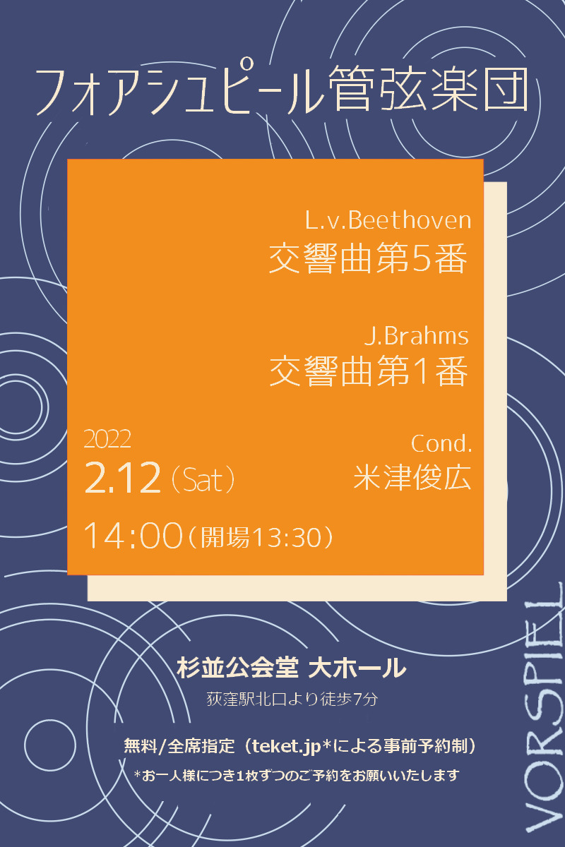 ベートーヴェンの5番・ブラームスの1番を演奏したい人たちが集まった、一度きりのオーケストラです。