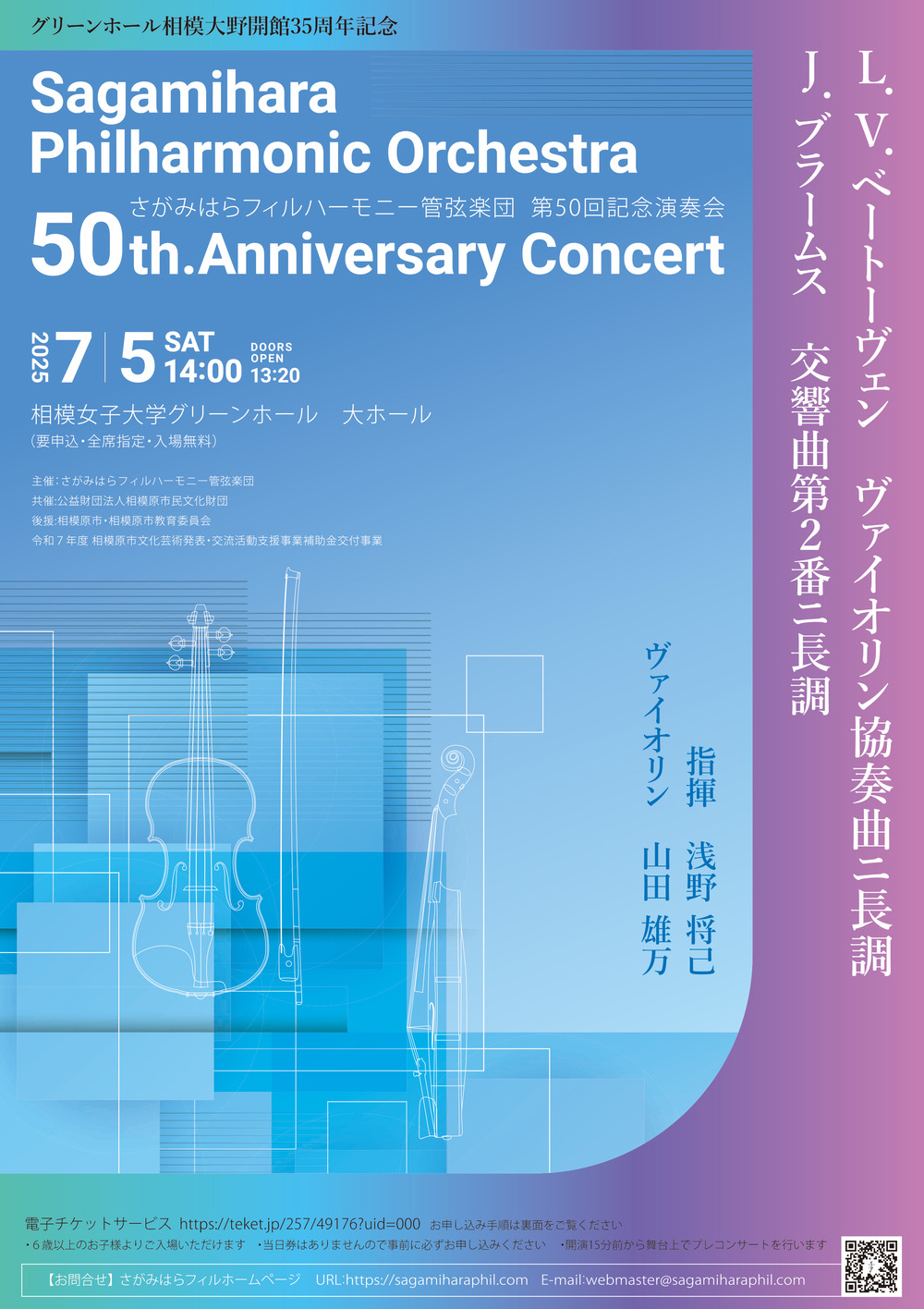 今回は、ベートーヴェン『ヴァイオリン協奏曲』とブラームス『交響曲第2番』の2曲を演奏します。前半は若手ソリストによるヴァイオリンの美しい旋律とオーケストラのハーモニーを、後半は豊かな自然の風景を思い起こさせるブラームスの名作をお楽しみください。