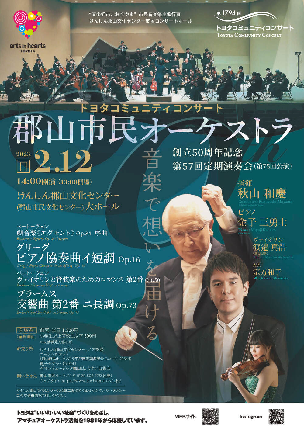 創立50周年を迎えた郡山市民オーケストラが、これまで応援してくださった市民の皆さまに感謝の想いをこめて、音楽を通して「希望や祈り」「エール」をお届けしたいと思います。