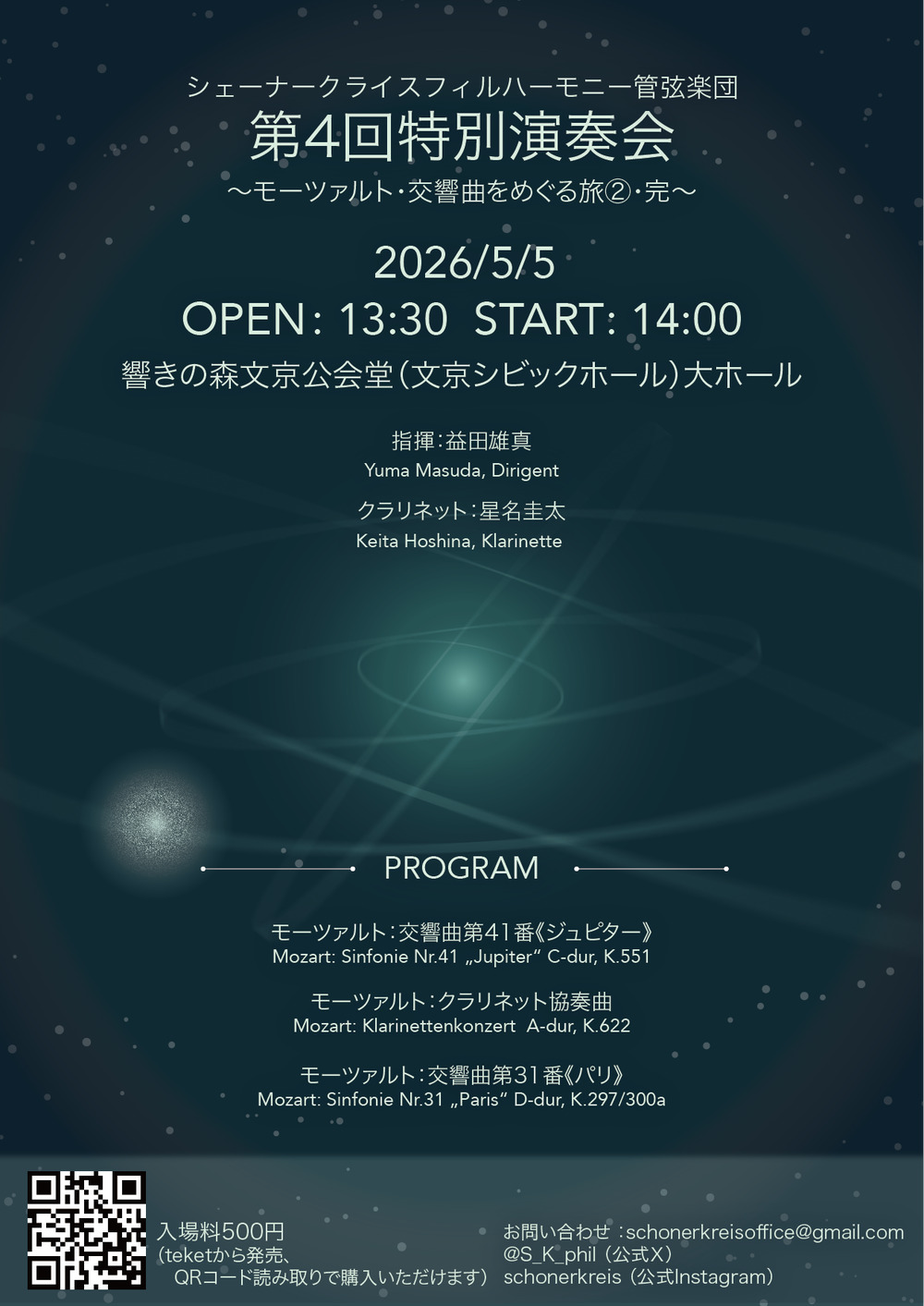 モーツァルト:クラリネット協奏曲 イ長調(独奏:星名圭太(当団クラリネット奏者))