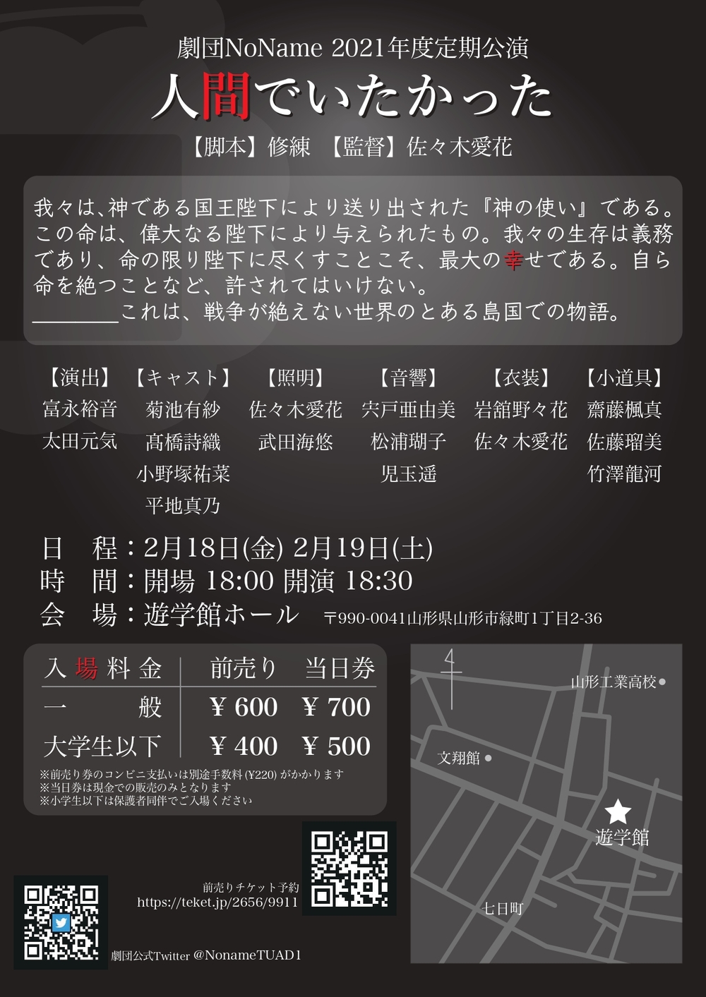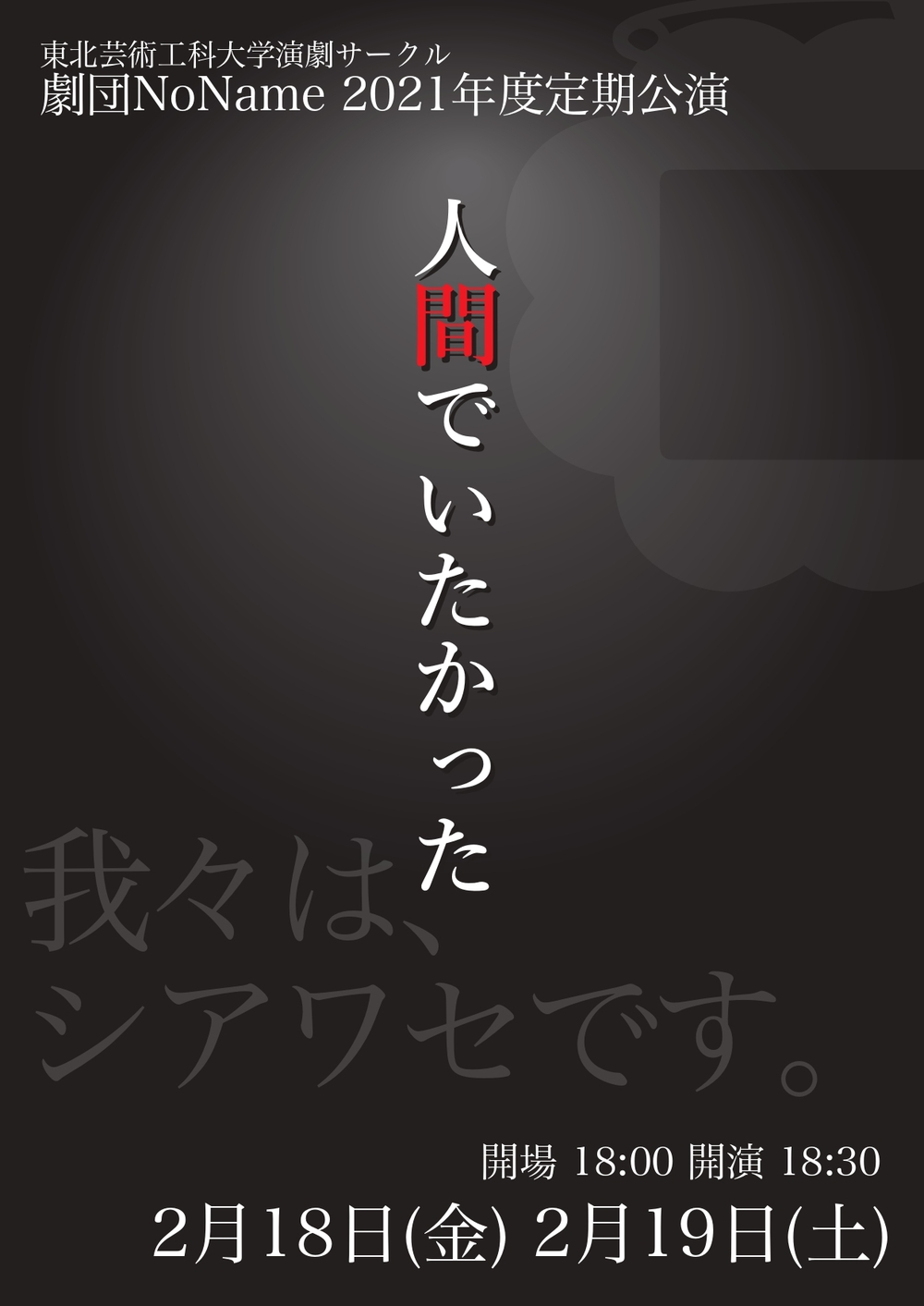 東北芸術工科大学、演劇サークル「劇団NoName」による定期公演です。どうぞお楽しみください。