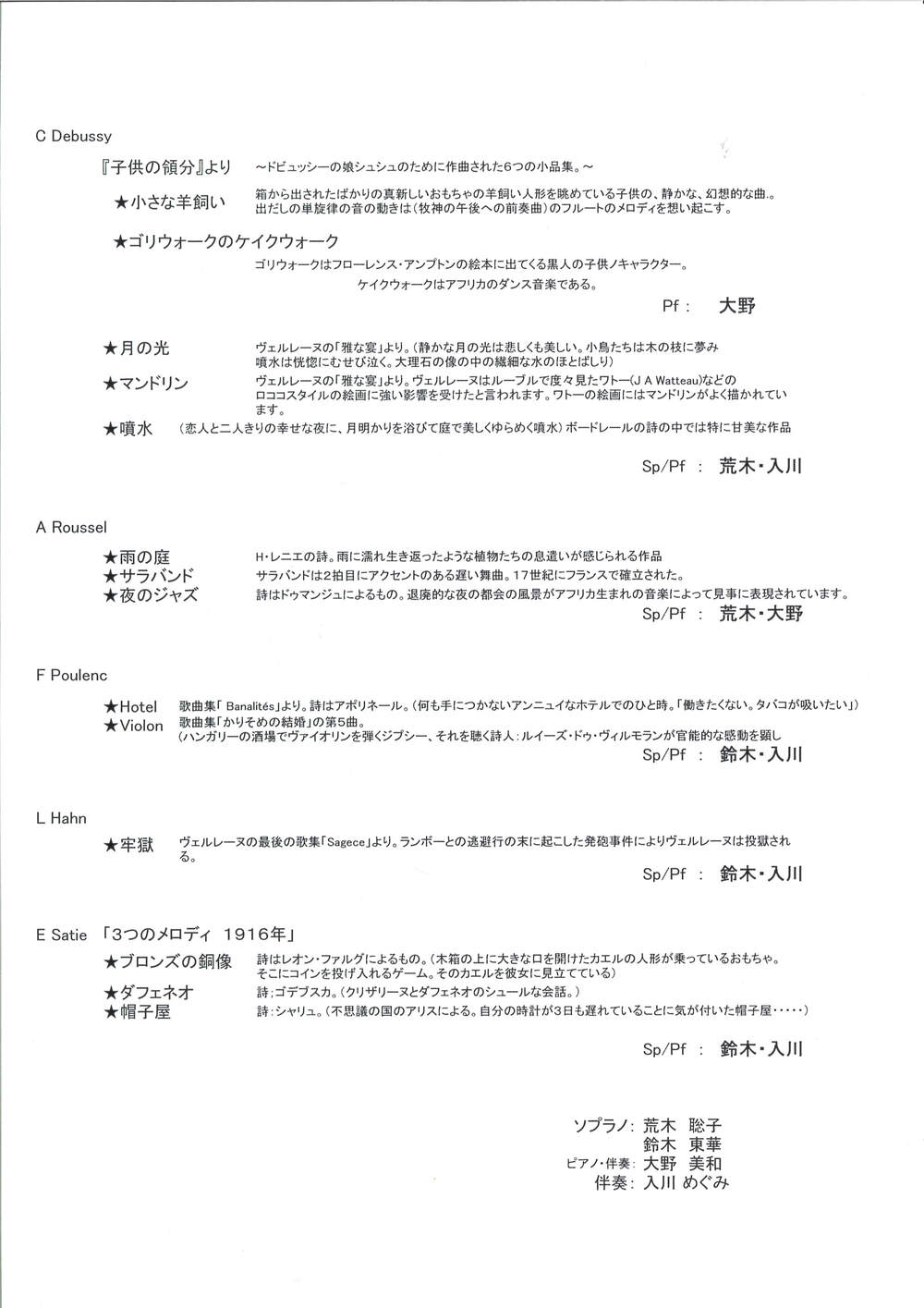 ドビュッシーとその後の時代として、ラヴェル、サティ、プーランク等の歌曲を演奏します。