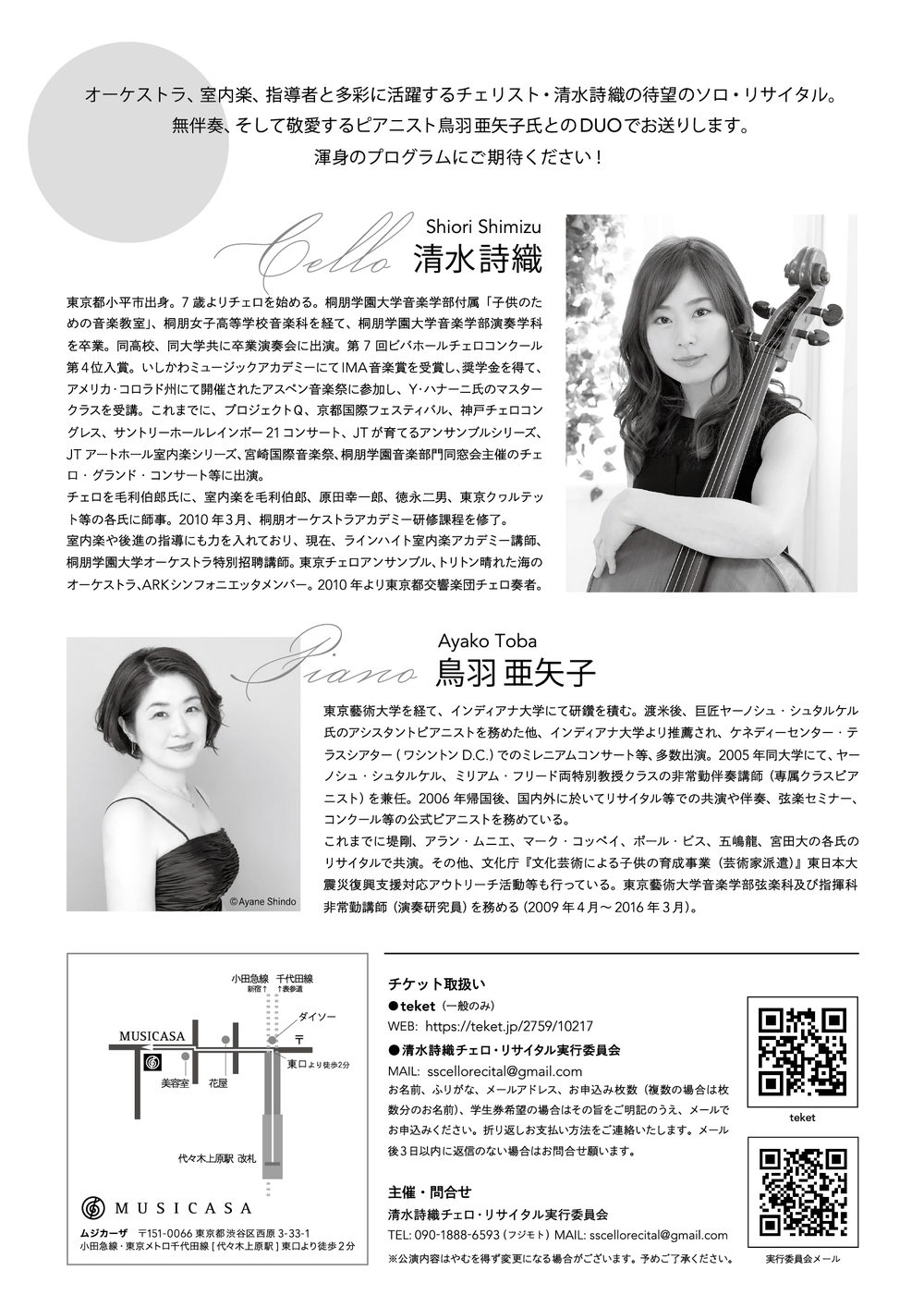 その他のお問い合わせ先:清水詩織チェロ・リサイタル実行委員会
