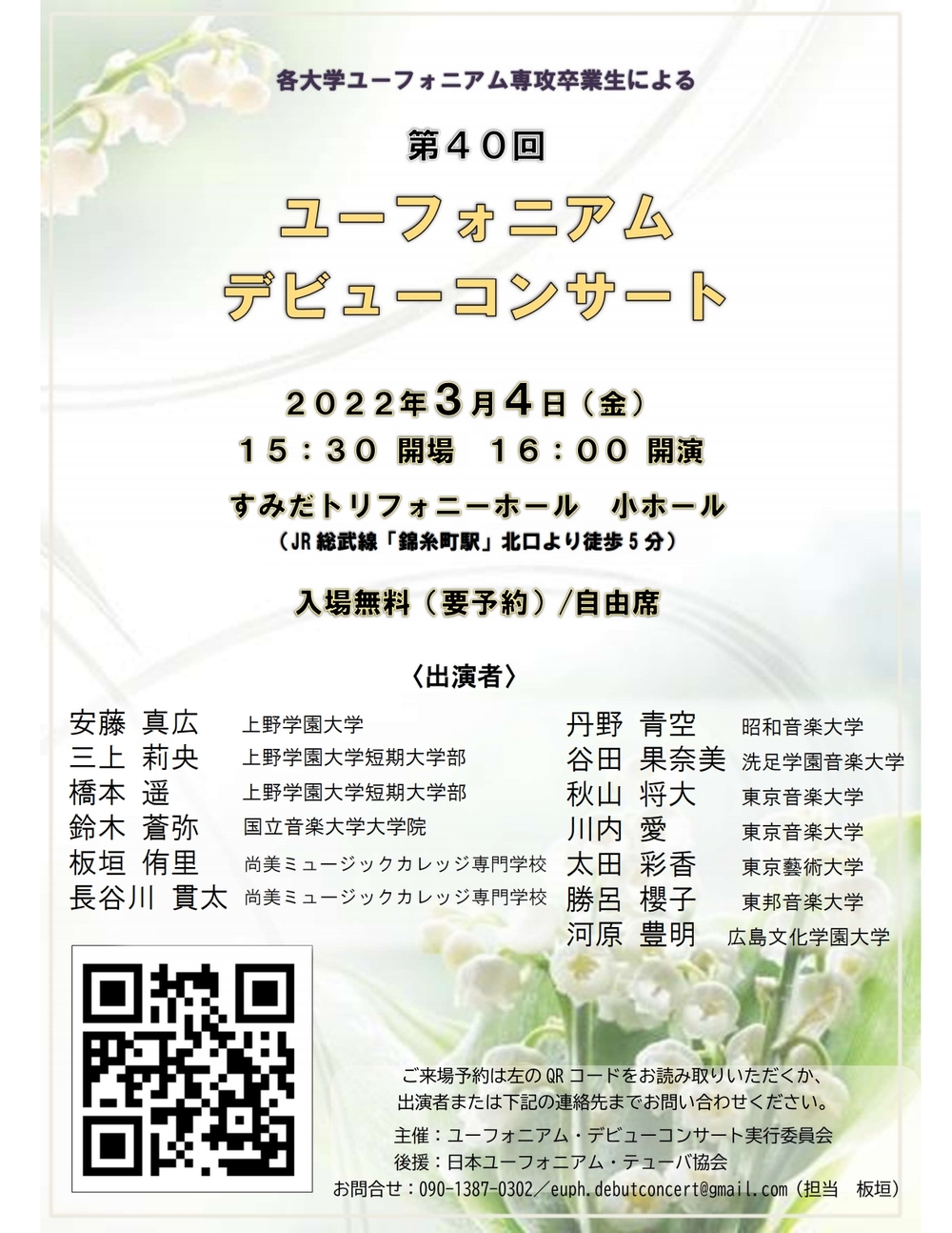 その他のお問い合わせ先:第40回ユーフォニアム・デビューコンサート実行委員会