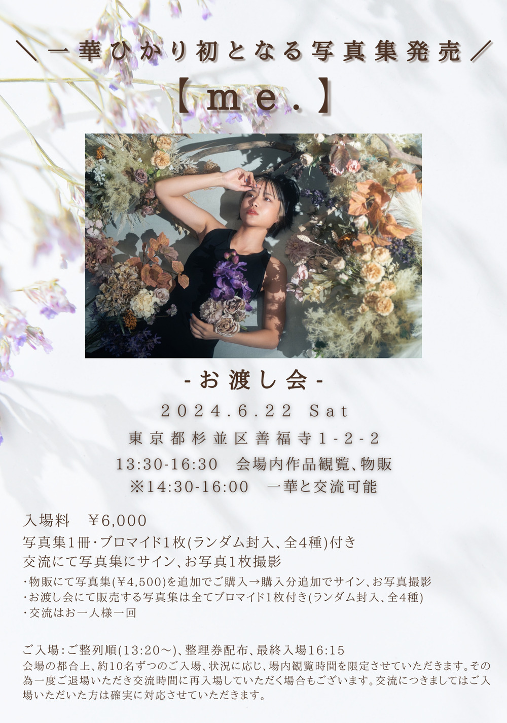 一華ひかり初となる写真集の発売に伴い、お渡し会を行います。また、会場内で一華が制作する作品や写真の展示、販売も行います。