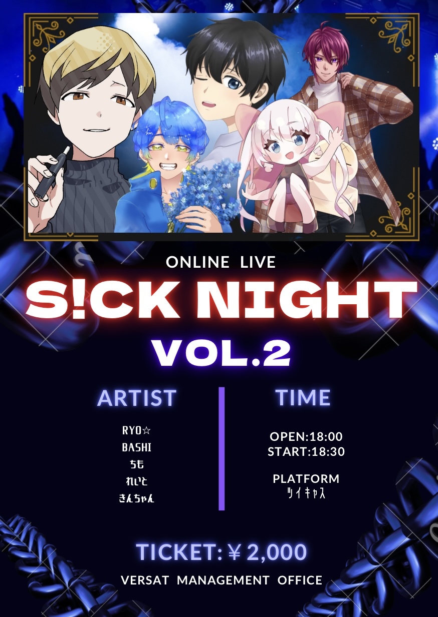 前回、最大同時視聴100人を超え好評だったオンラインライブ「シックナイト」のvol.2です。