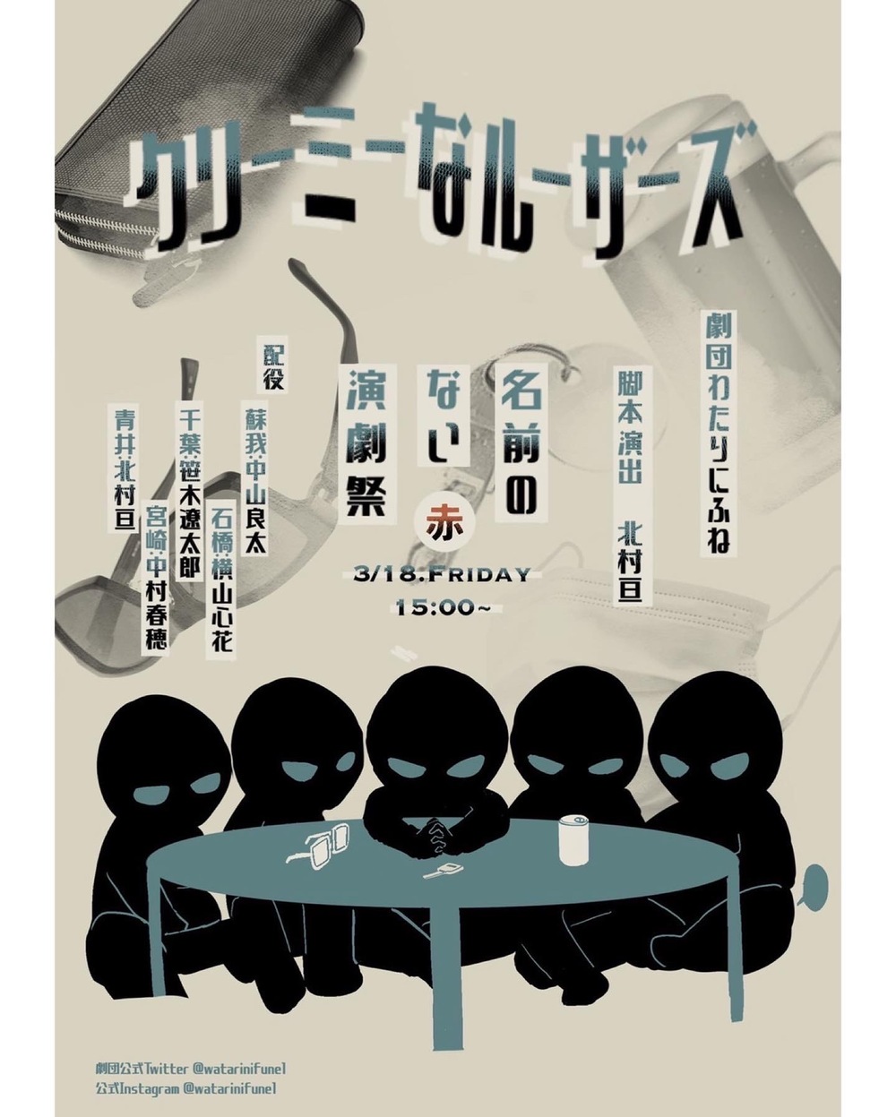 名前のない演劇祭赤にて3月18日に上演する旗揚げ作品「クリーミーなルーザーズ」の配信版です。アーカイブ配信です。