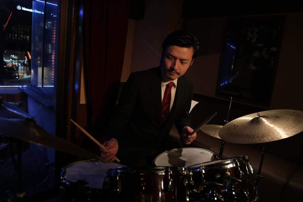 ゲストの拍手に包まれながら演奏するメンバの躍動するリズム、
