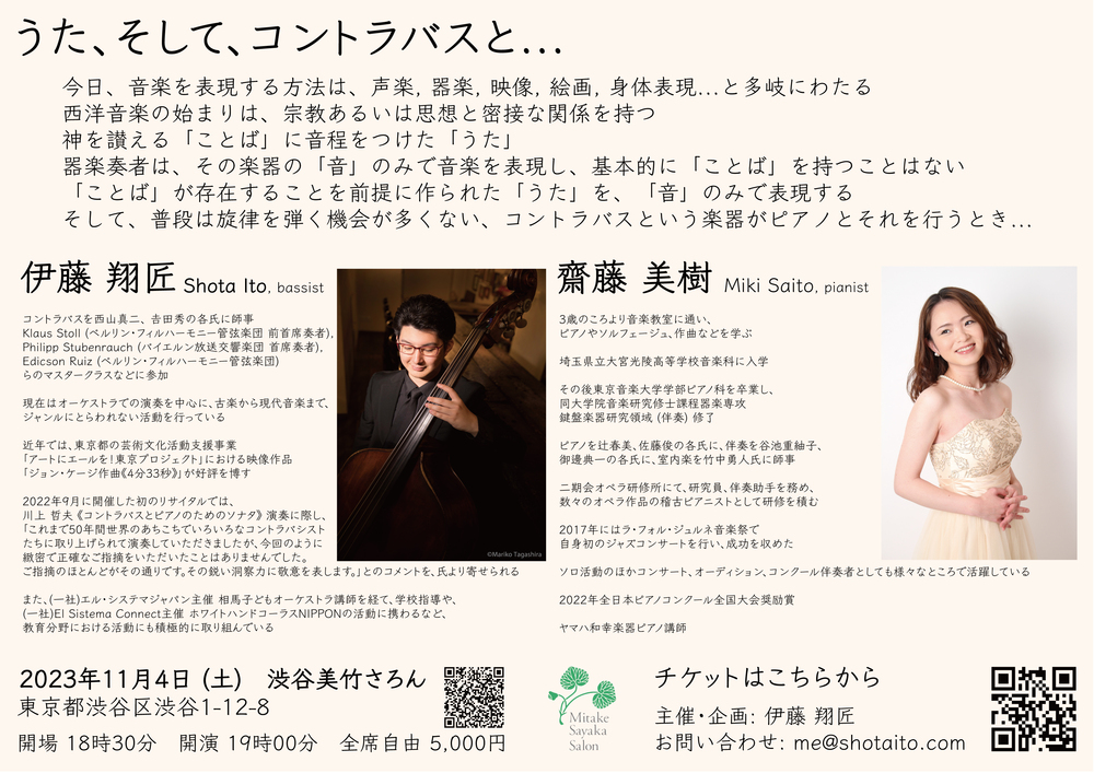 そして、普段は旋律を弾く機会が多くない、コントラバスという楽器がピアノとそれを行うとき