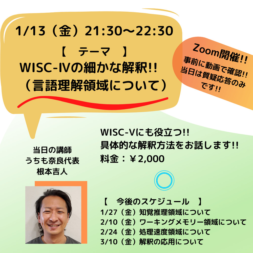 検査内容までわからなくても、得点差や所見から読み取れるポイントをお伝えします。WISCの情報を最大限に生かし、子どもたちの能力upを手伝っていきましょう。