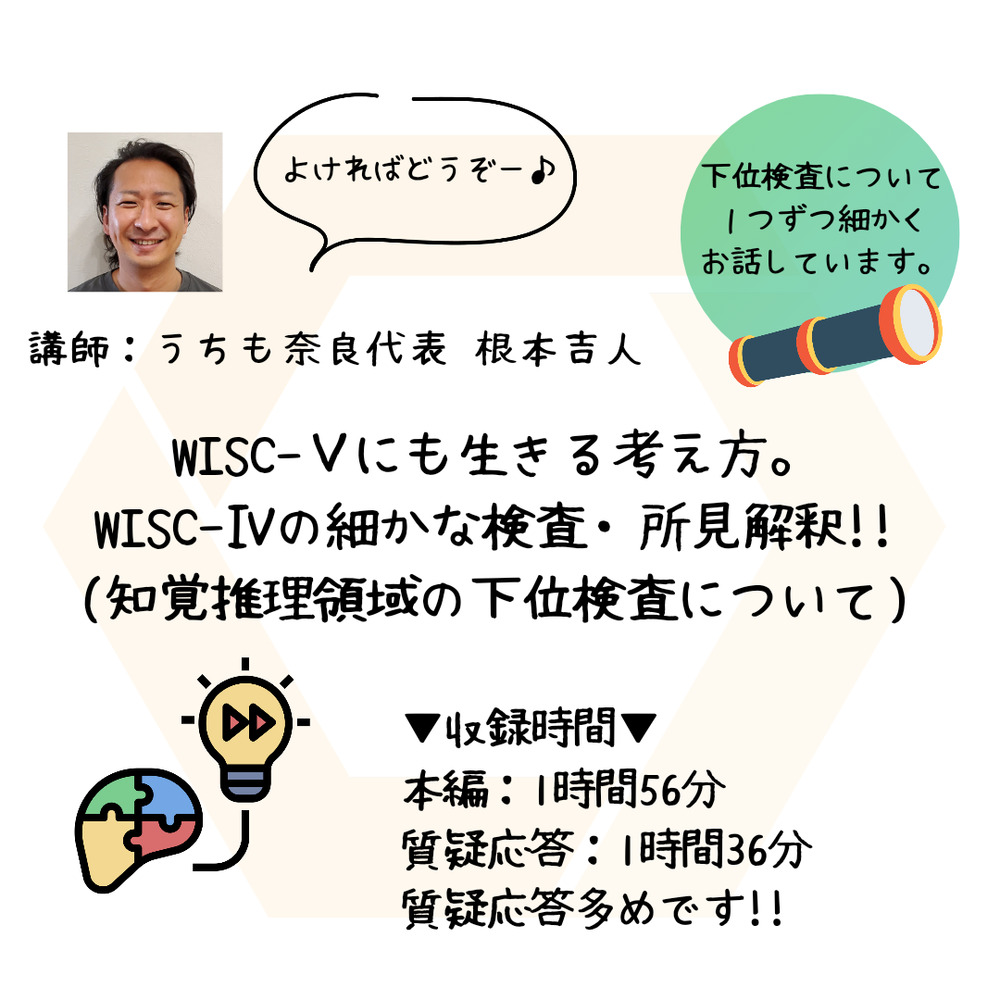 YouTubeの『うちも奈良』チャンネルにWISC研修動画の補足動画があります。よろしければ、併せてご利用ください。