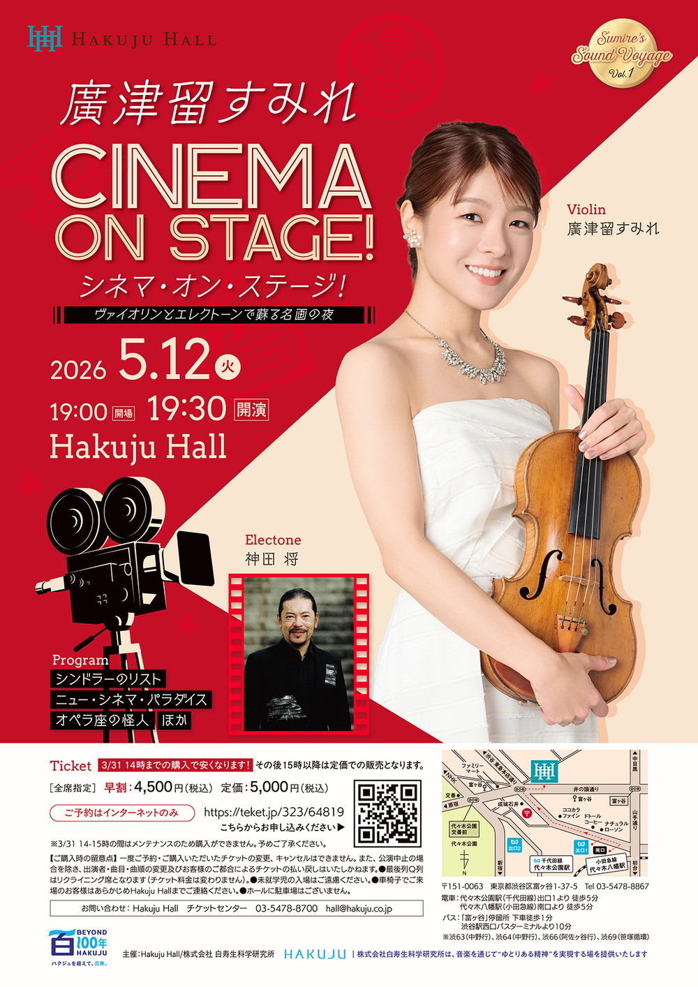 共演にエレクトーンの鬼才・神田将氏を迎え、たった二人のステージとは思えない圧巻のオーケストラ・サウンドを再現。代々木公園を望むハクジュホールが、一瞬にして銀幕の情景へと塗り替えられます。
