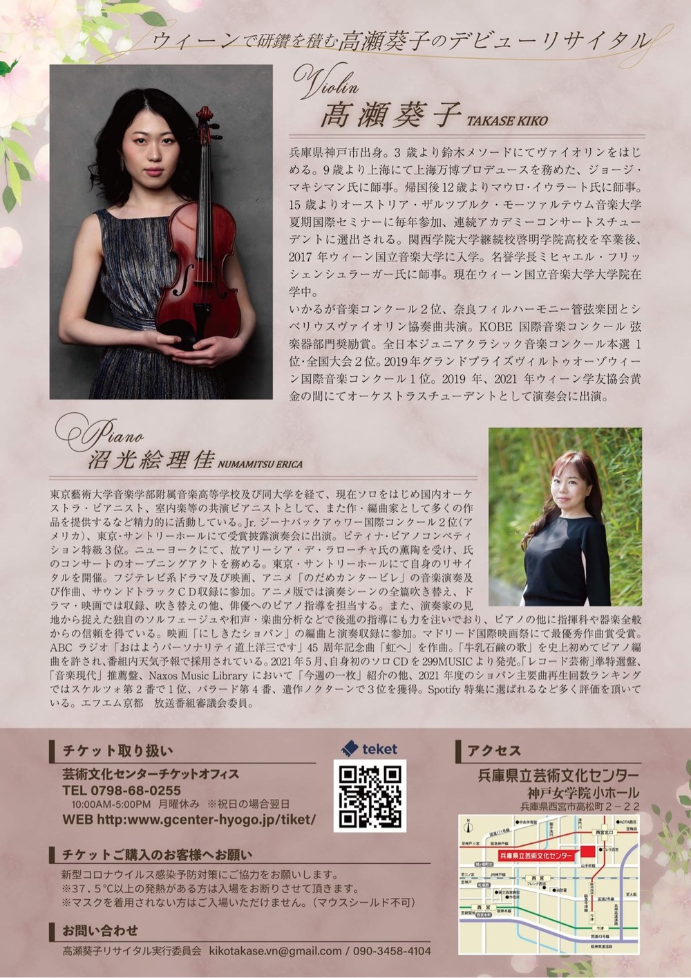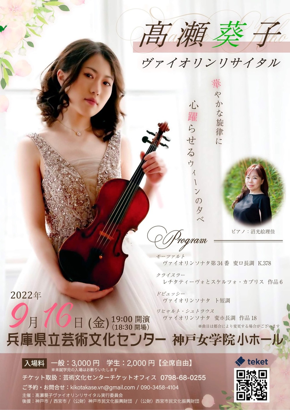 その他のお問い合わせ先:高瀬葵子ヴァイオリンリサイタル実行委員