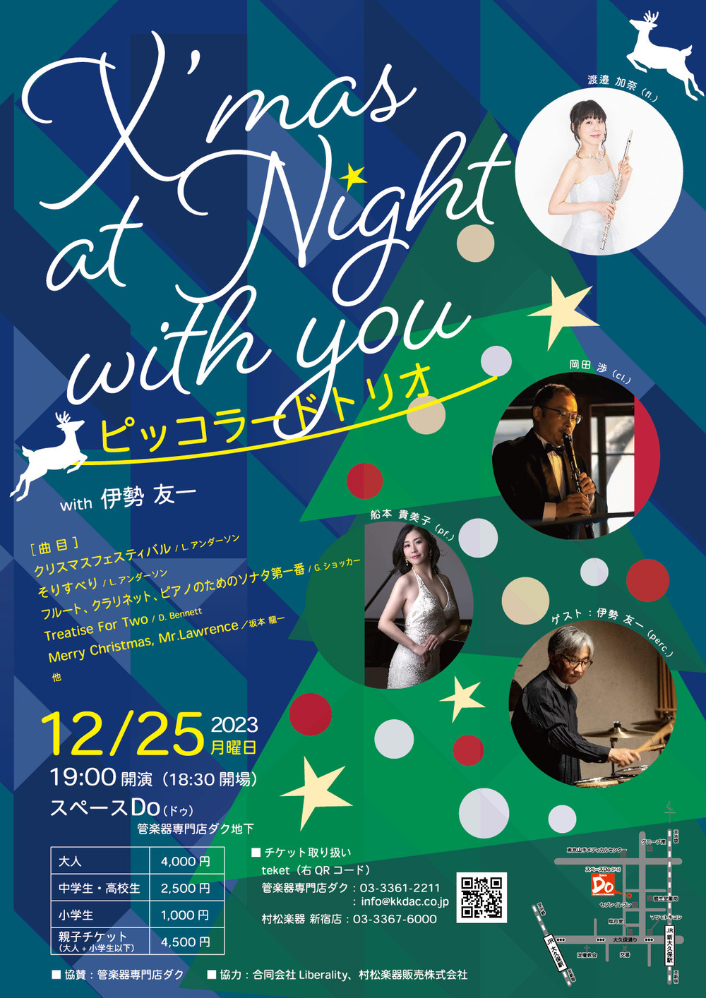 気のおけない飲み仲間という意味のピッコラードトリオが、打楽器奏者 伊勢友一氏をゲストに、クリスマスフェスティバル他、クリスマスならではの名曲を中心に心温まる音楽をお届けします!