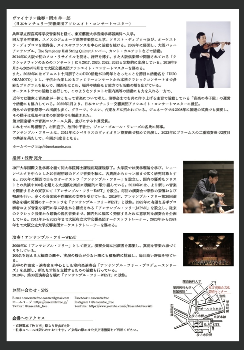 *ヴァイオリン独奏:岡本 伸一郎(日本センチュリー交響楽団 アソシエイト・コンサートマスター)
