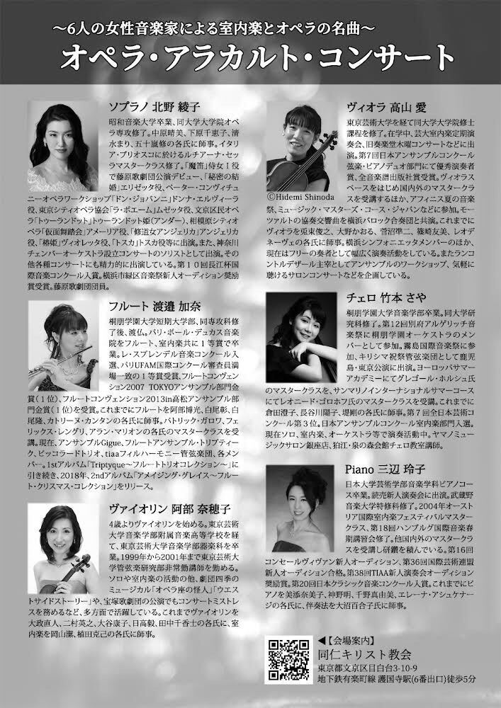 女性音楽家たちによる室内楽とオペラの名曲の数々をお楽しみください。