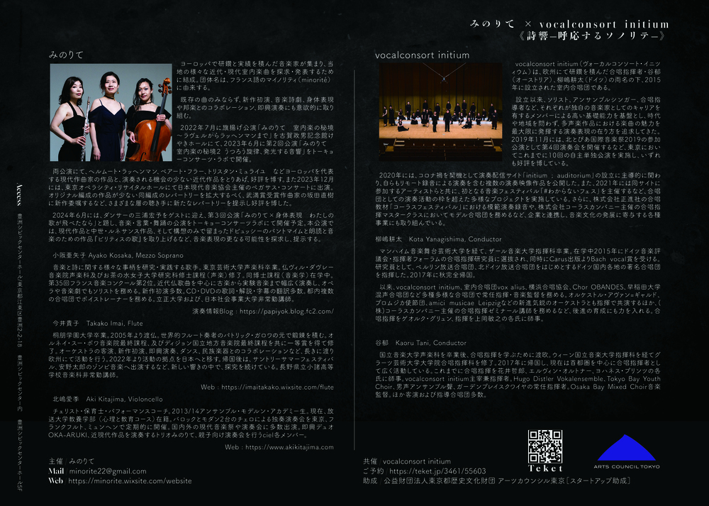 坂田直樹(1981- 日本)/委嘱作品 メゾ・ソプラノ、フルート、チェロのための (2026年世界初演) →都合により《春愁三首》(2025年改訂版)へと変更になりました。