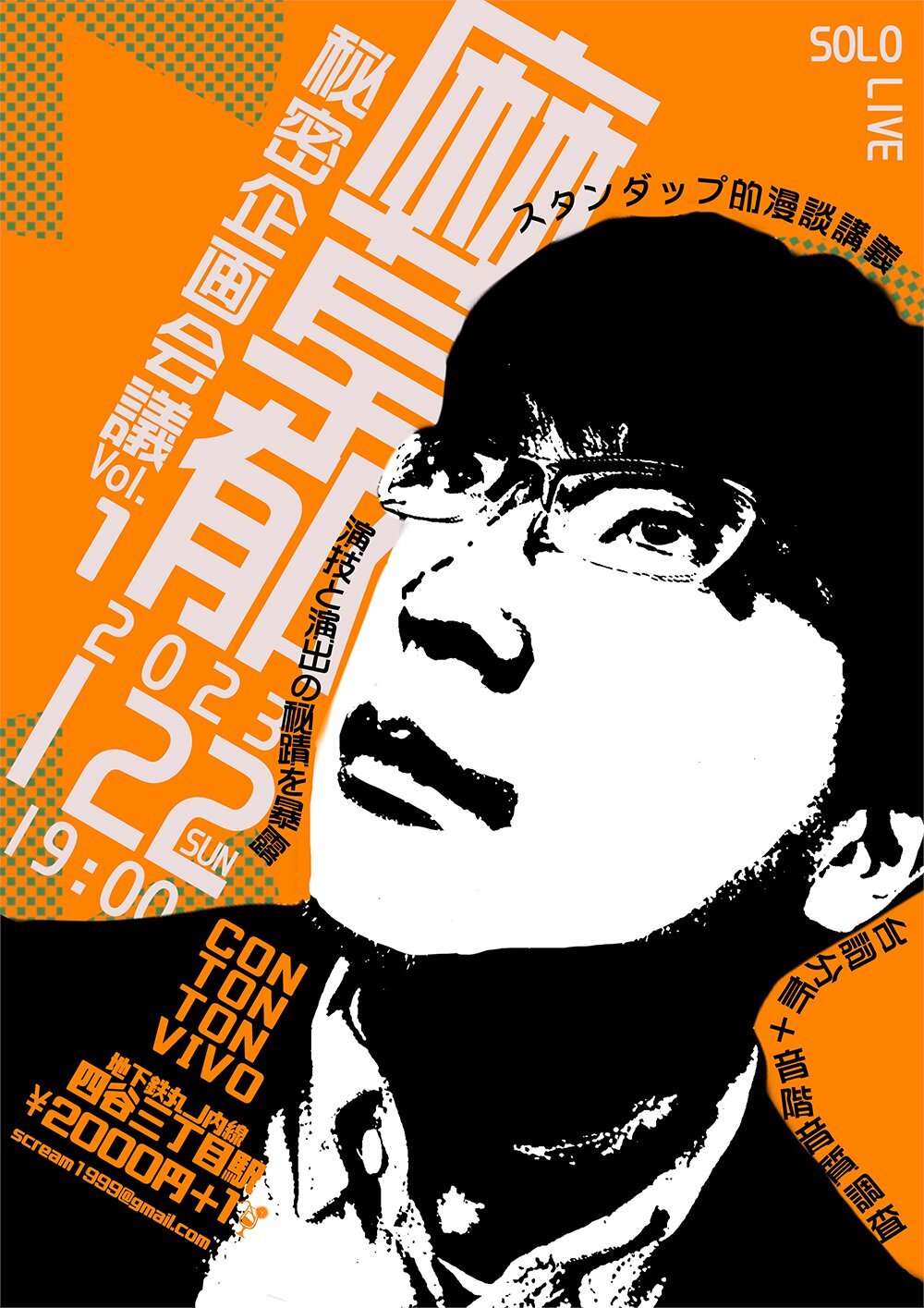 劇作家麻草郁が、2023年の抱負を込めて、語る、歌う、笑いと脅威の90分。スタンダップの内容は「声の表現における音質と音程変化の効果とその実践」「台詞分析と台本解析、上下左右演出とは」等々。観劇にも演技にも役立つひみつも満載のソロライブは、参加する皆様だけが知ることのできるひみつの企画会議です。