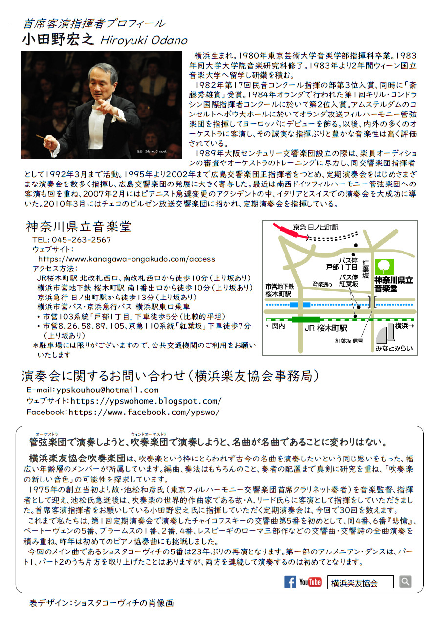 今回のメイン曲であるショスタコーヴィチの5番は23年ぶりの再演となります。第一部のアルメニアン・ダンスは、パート1、パート2のうち片方を取り上げたことはありますが、両方を連続して演奏するのは初めてとなります。