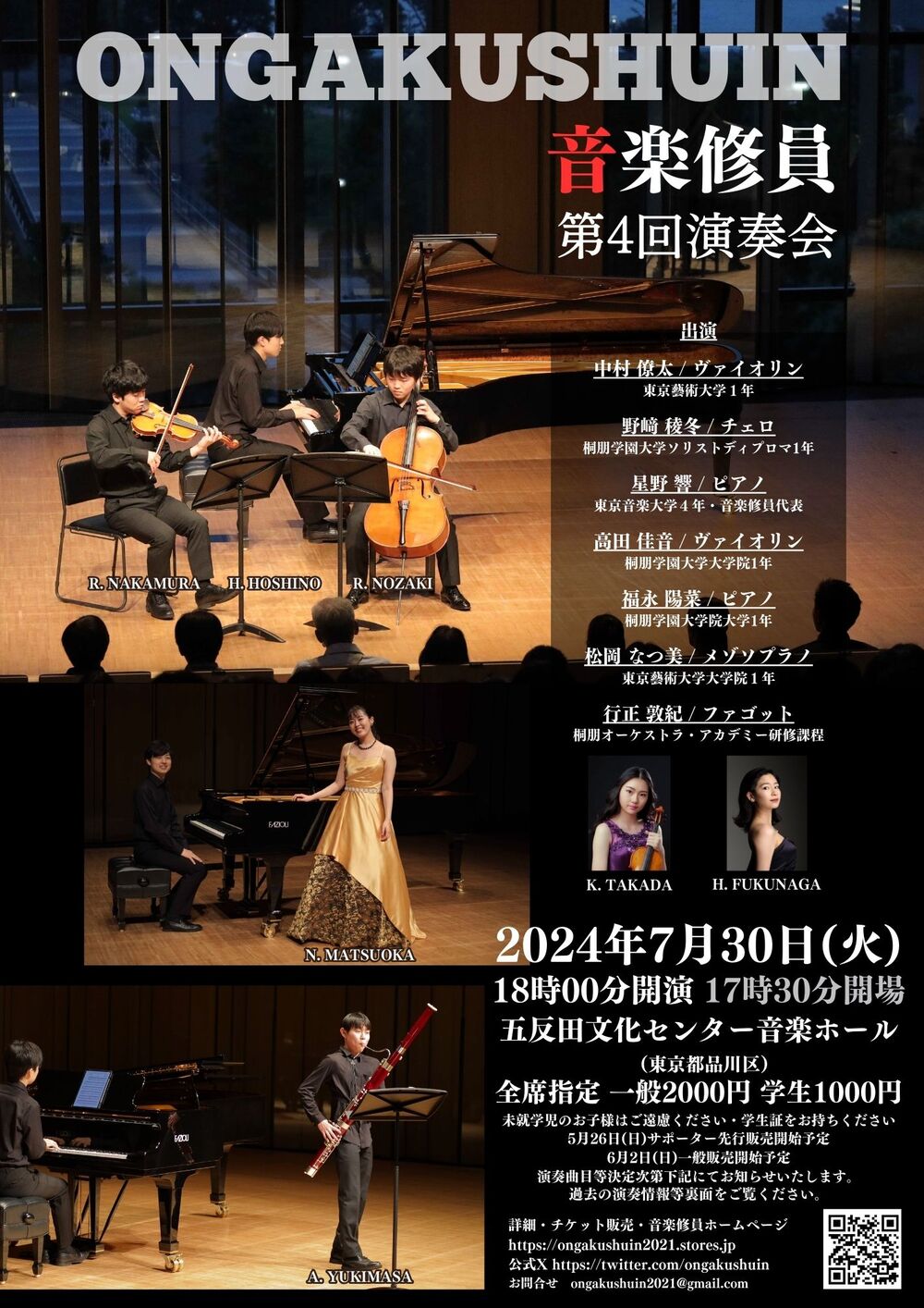6.26. 音楽修員第4回演奏会はチケット完売にて、無事終演いたしました。