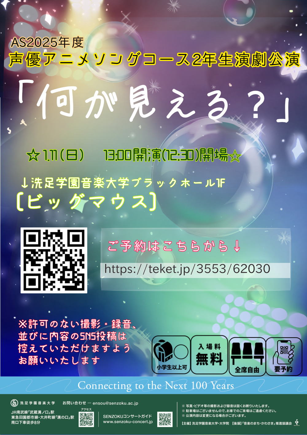 チケットキャンセルは asmusic@senzoku.ac.jp まで、公演名、ご予約番号を記載のうえ、ご連絡くださいませ。