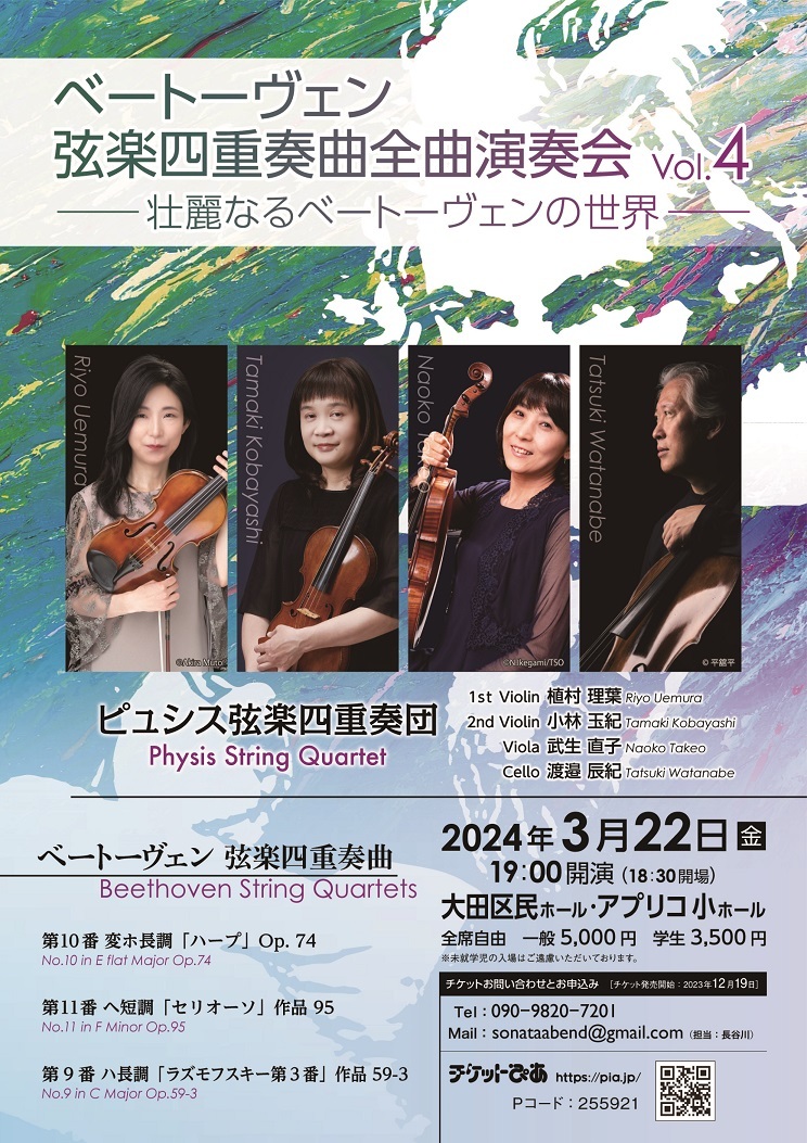 ベートーヴェンの中期の名作をピュシス弦楽四重奏団のライヴ録音と映像でどうぞお楽しみください。