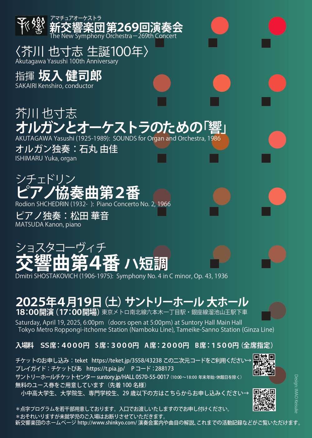 2023年、当団との《第9番》《第12番》で好評を博し、翌年には《第5番》でNHK交響楽団へのデビューも果たした坂入健司郎が、満を持してこの意欲作に挑みます。1986年のサントリーホール落成を記念して書かれた《響》のソリストには、すでに当団と共演を重ねる石丸由佳を迎えて。