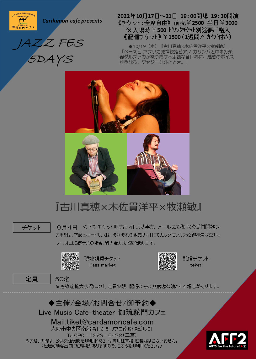 「ベースと アフリカ発祥親指ピアノ カリンバと中東打楽器ダルブッカが織り成す不思議な音世界に、魅惑のボイスが重なる、ジャジーなひととき。」