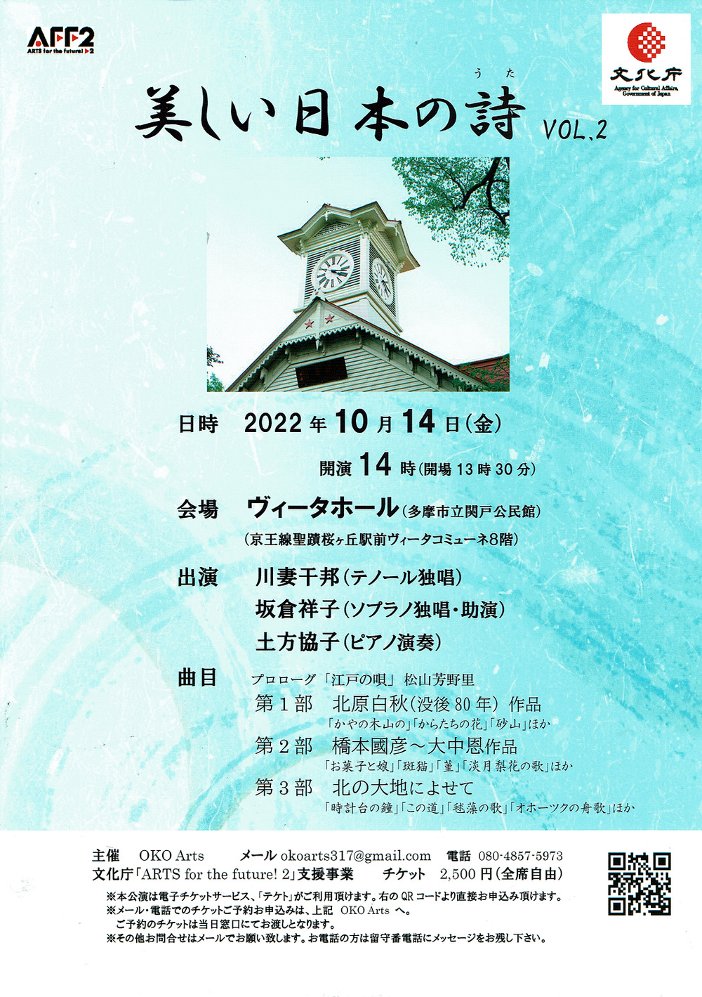 「時計台の鐘」「この道」「毬藻の歌」「オホーツクの舟歌」~