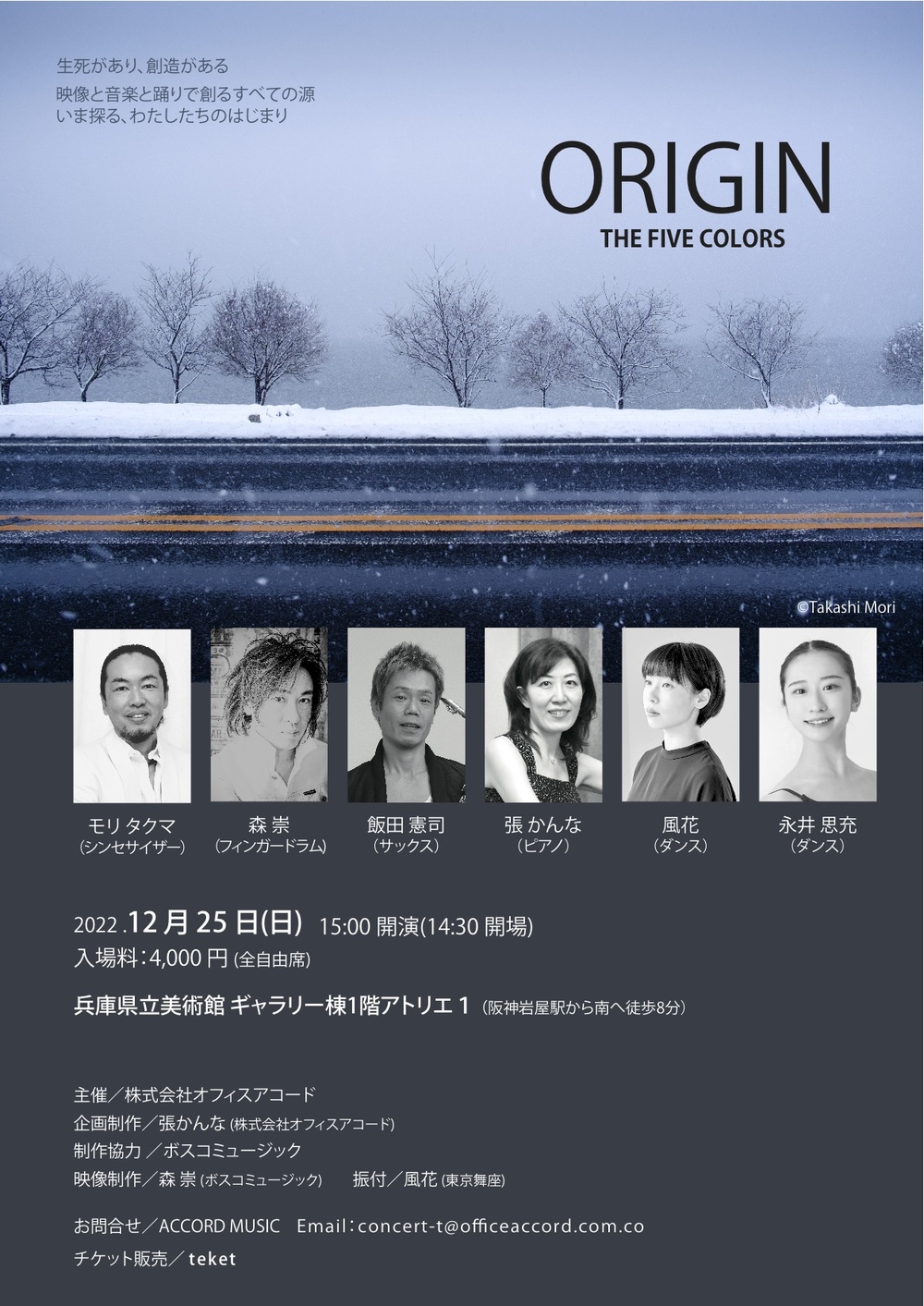 陰陽五行の「万物は5色にあらわされる」ということに基づき、映像、音楽、踊りで根源の誕生から、その先の世界を表現することに挑みます。